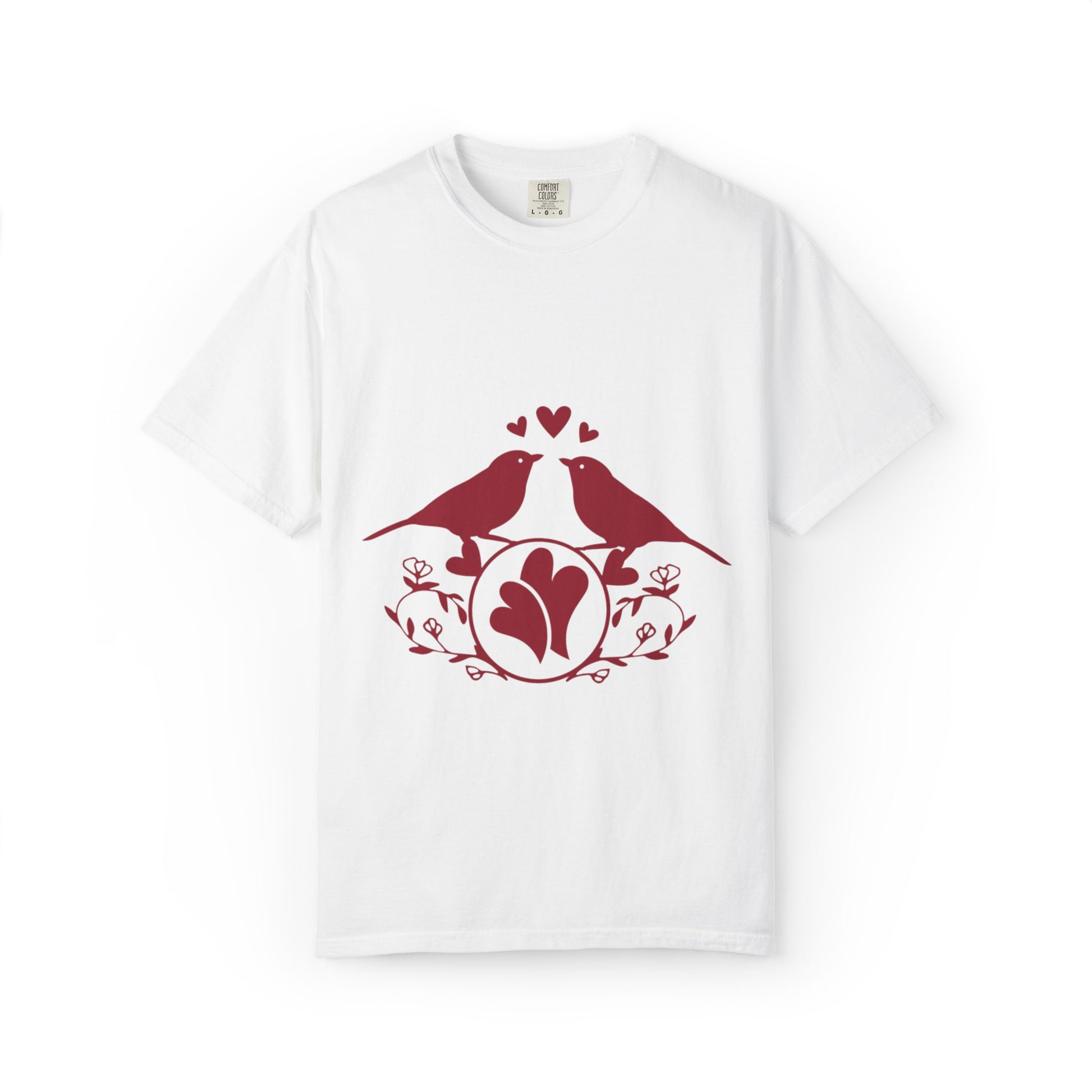 Romantic Love Birds Monogram Boundless Love Affection Lover’s Tee Infinite Bliss Butterfly Kisses Evergreen Romance Unisex Heavy Cotton T-Shirt